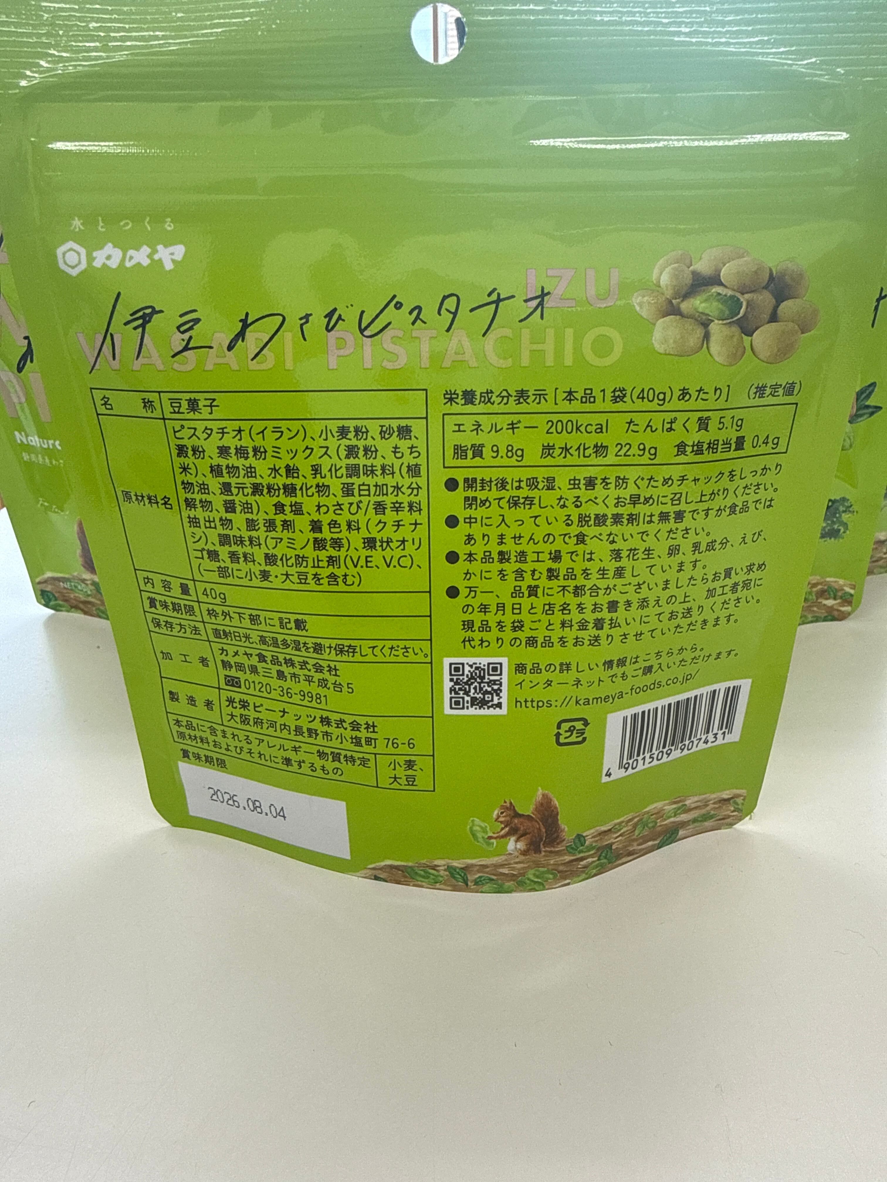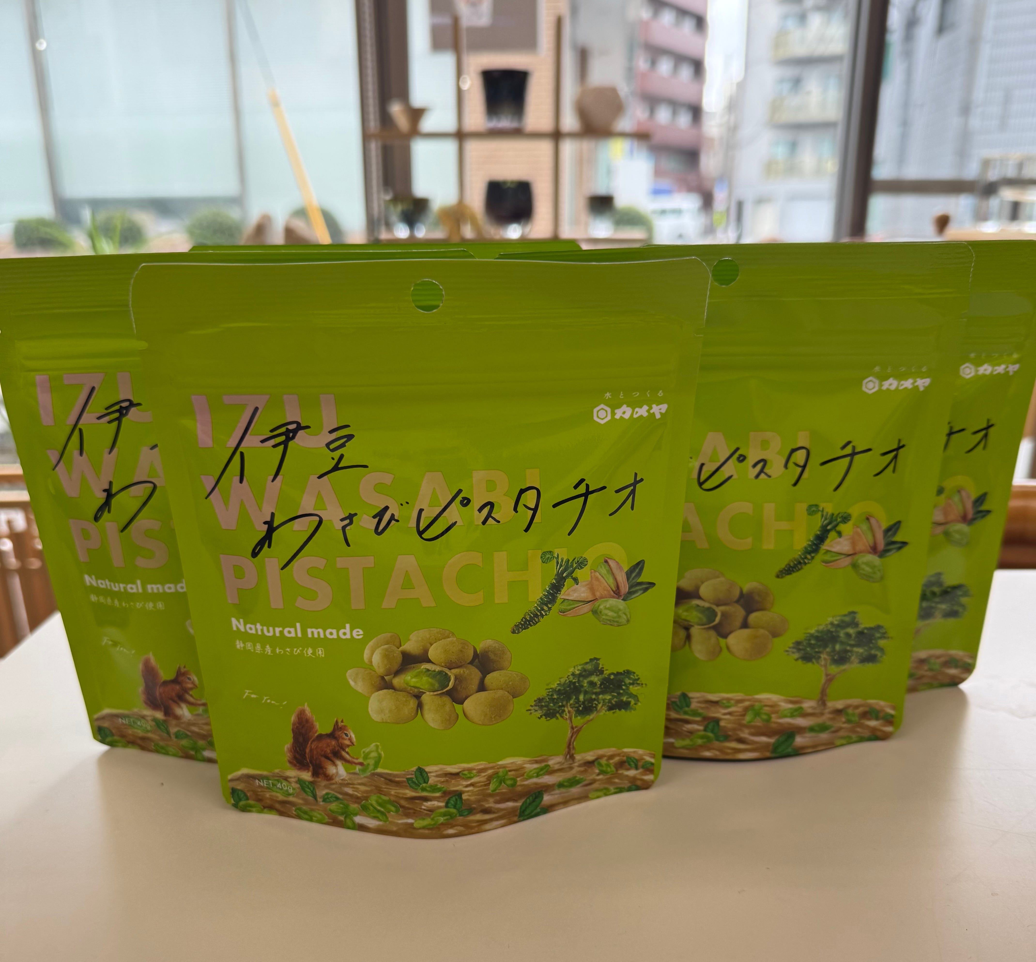 伊豆のわさびを使った衣に包まれたツーンと辛いわさび味なのに中身は贅沢にピスタチオが入っているという優れもの。
